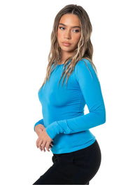 Combine style and function with a long-sleeve baby tee that subtly sculpts and smooths while keeping you cool. Cut from a breathable cotton-blend with gentle, low compression, this piece from our Tops collection hugs in the right places and flatters your natural shape. A clean crew neckline and sleek, hip-skimming silhouette make it effortless to dress up or down.