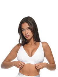 This ribbed bralette blends casual comfort with refined design, featuring a deep V-neckline that flatters the chest and a silky modal fabric that feels as luxurious as it looks. Perfect for lounging, layering, or styling as a top, it gives light, natural support without wires or discomfort.