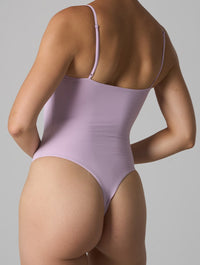 The high-cut leg and thong back keep lines invisible under any outfit, while the seamless construction ensures all-day comfort. Simple, timeless, and incredibly versatile—this bodysuit is made to disappear under clothes but stand out in your closet.