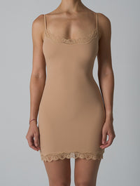 Meet the ultimate second-skin slip that blends elegance, comfort, and everyday versatility. The Smooth Lace Singlet Dress is crafted from our signature seamless fabric that hugs your curves without squeezing, creating a flawless, smoothing effect under your favorite outfits—or worn on its own for effortless lounge chic.